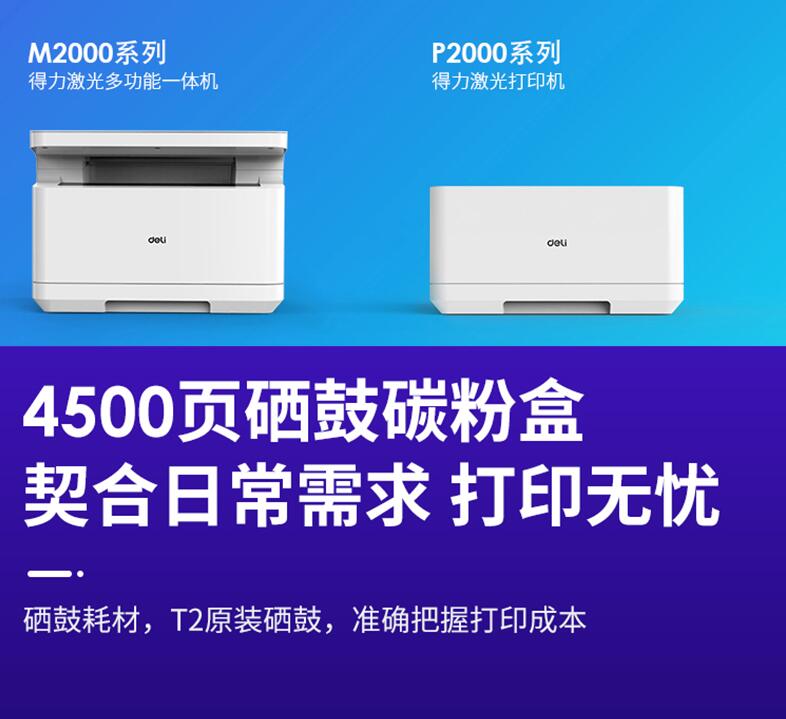 得力T2原裝硒鼓墨盒碳粉墨粉M2000DW M2000DNW M2000N DN NW P2000D P2000W 2000激光復(fù)印機(jī)打印機(jī)粉盒通用