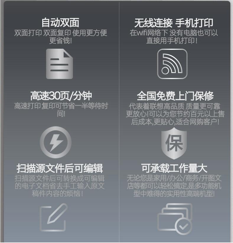聯(lián)想M7605DW無(wú)線自動(dòng)雙面激光打印機(jī)復(fù)印掃描一體機(jī)